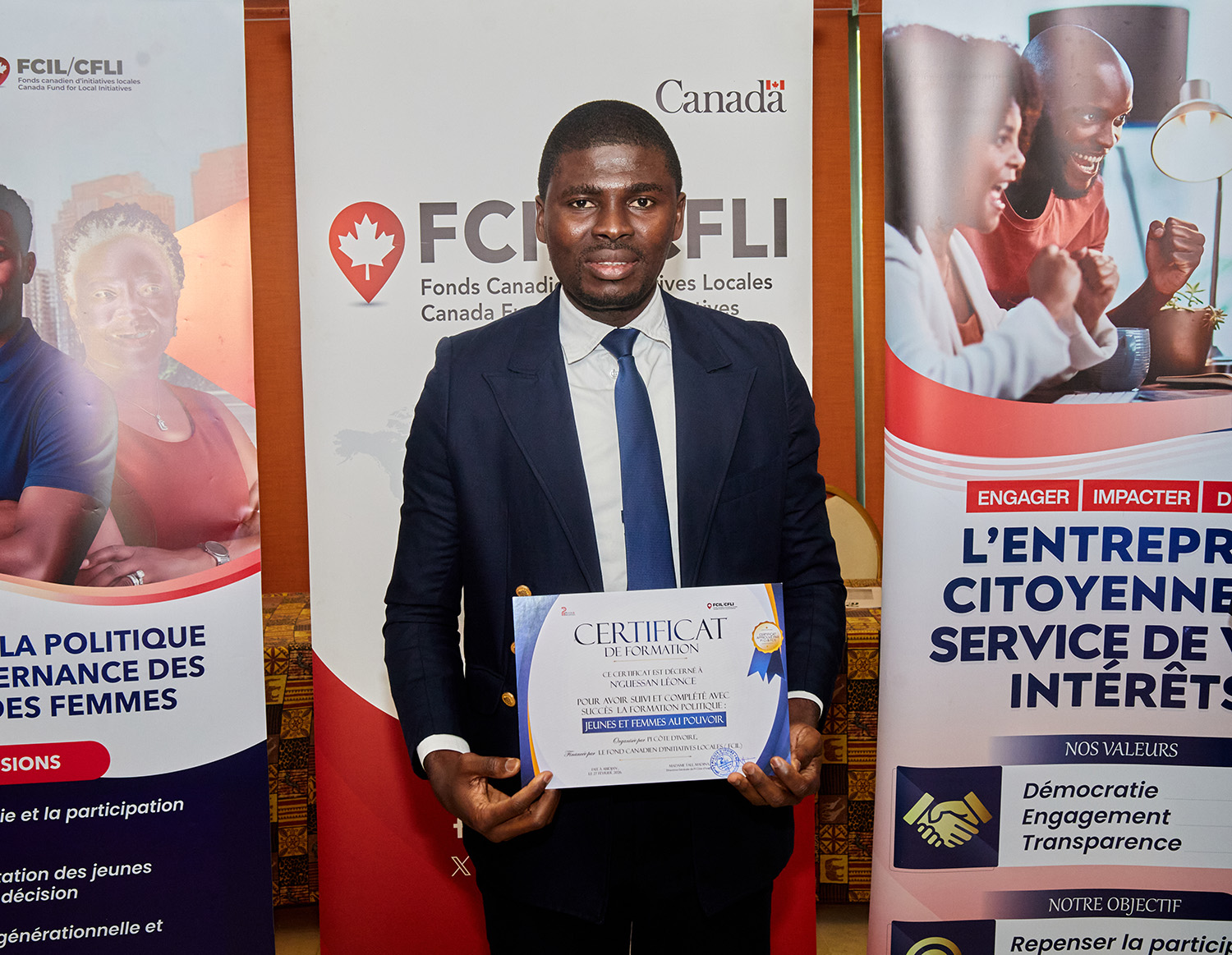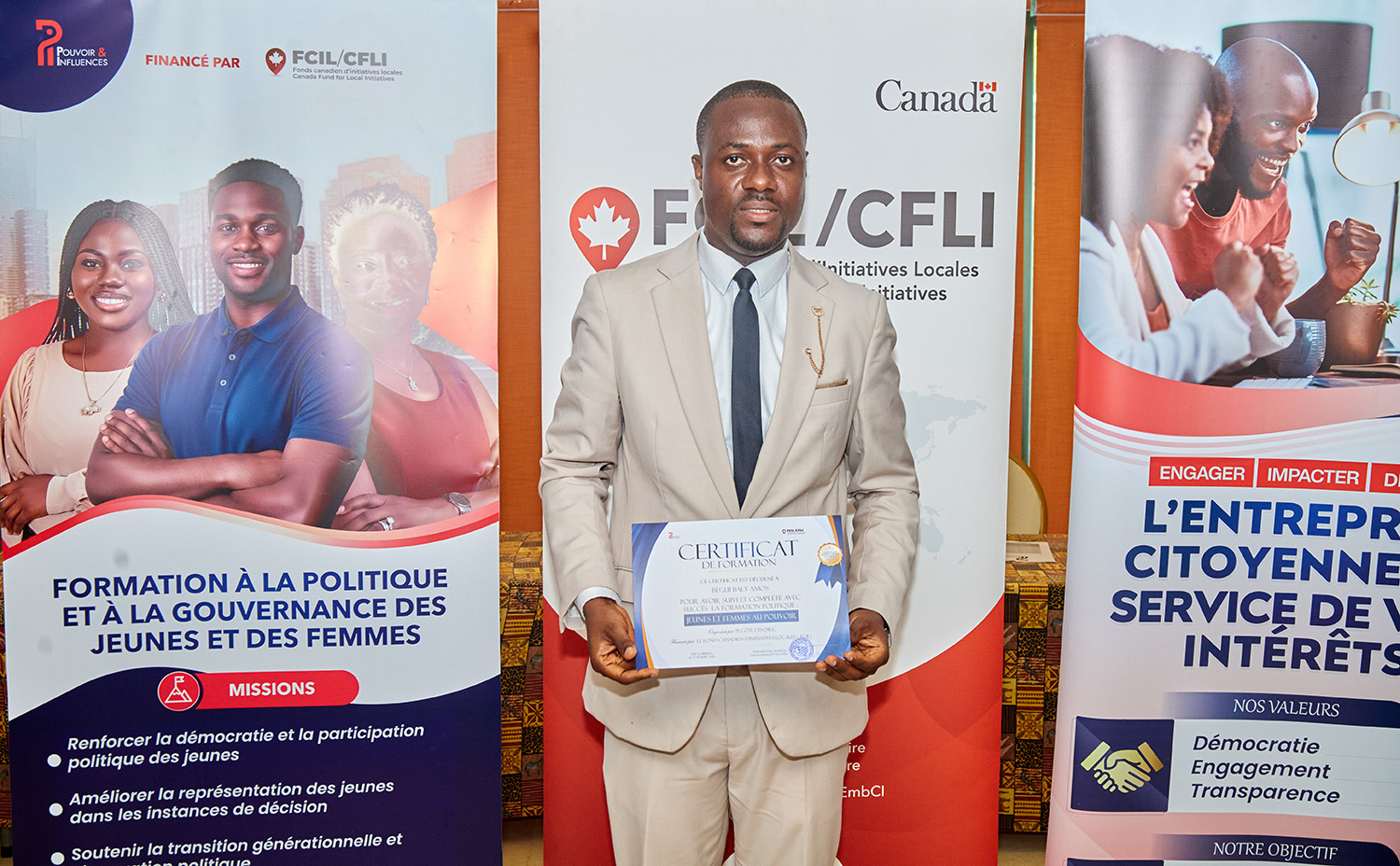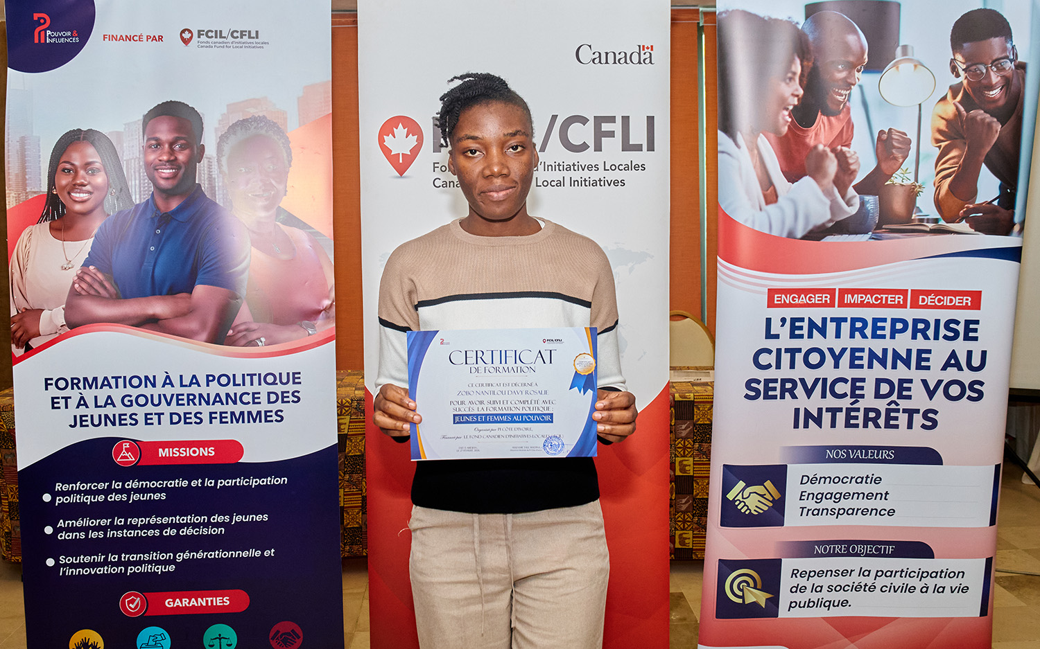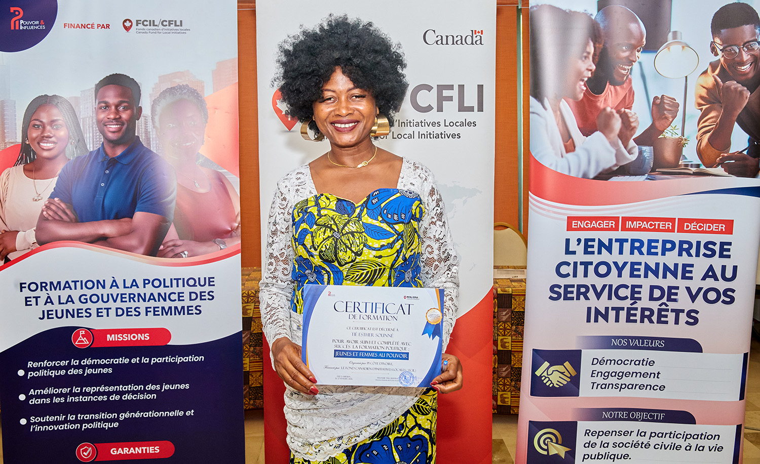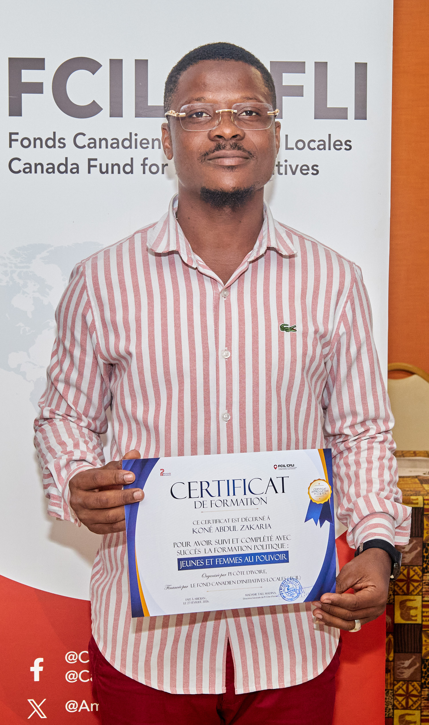 Du 25 au 27 février 2026, l’Hôtel Palm Club d’Abidjan-Cocody a accueilli « Jeunes et Femmes au Pouvoir : une formation pour agir », organisée par Pi Côte d’Ivoire avec le soutien du Fonds Canadien d'Initiatives Locales (FCIL), cette session intensive a visé à outiller la nouvelle génération de leaders pour renforcer leur participation politique et citoyenne.