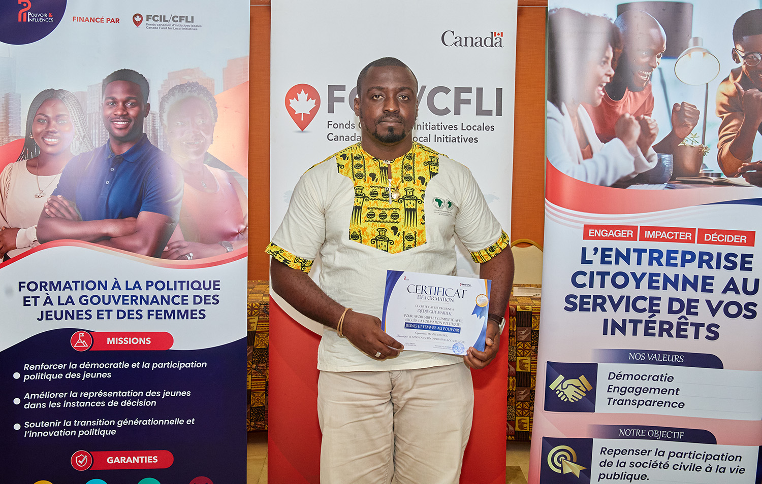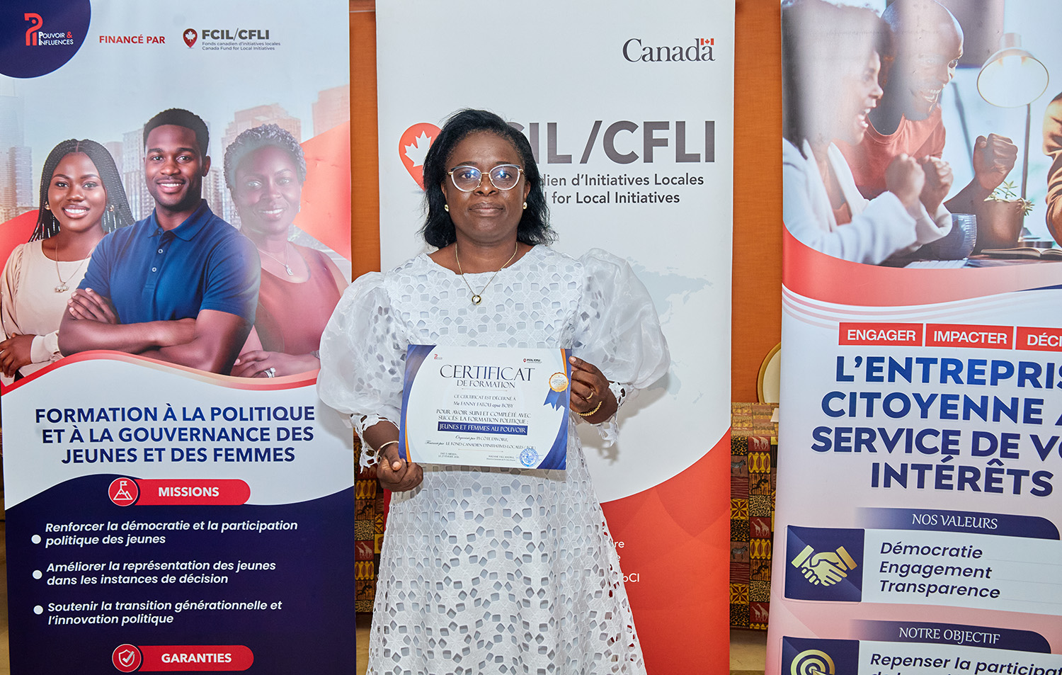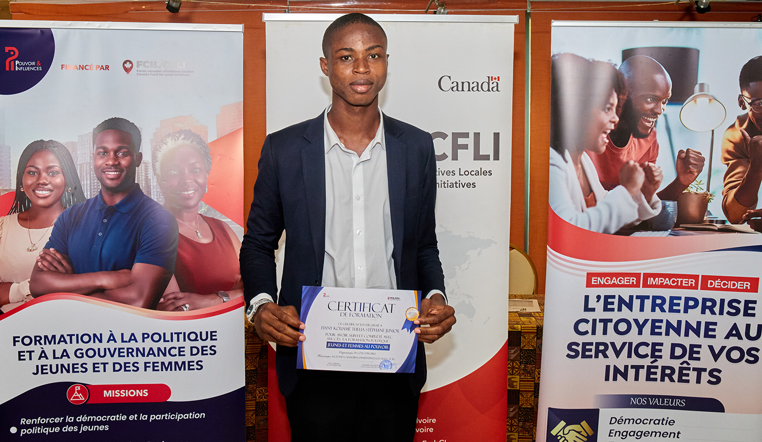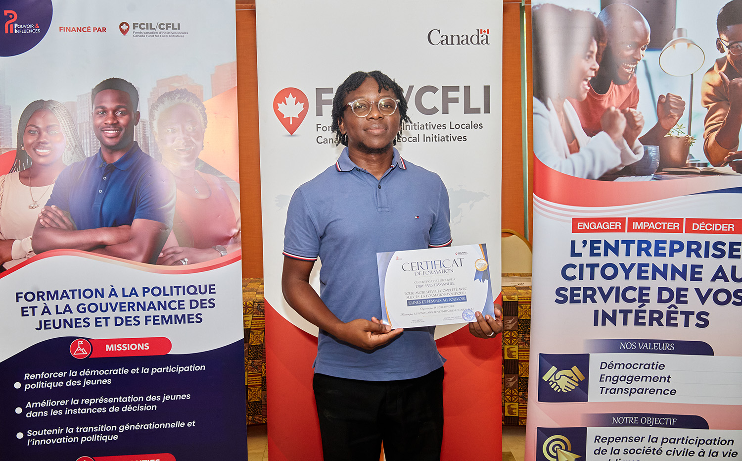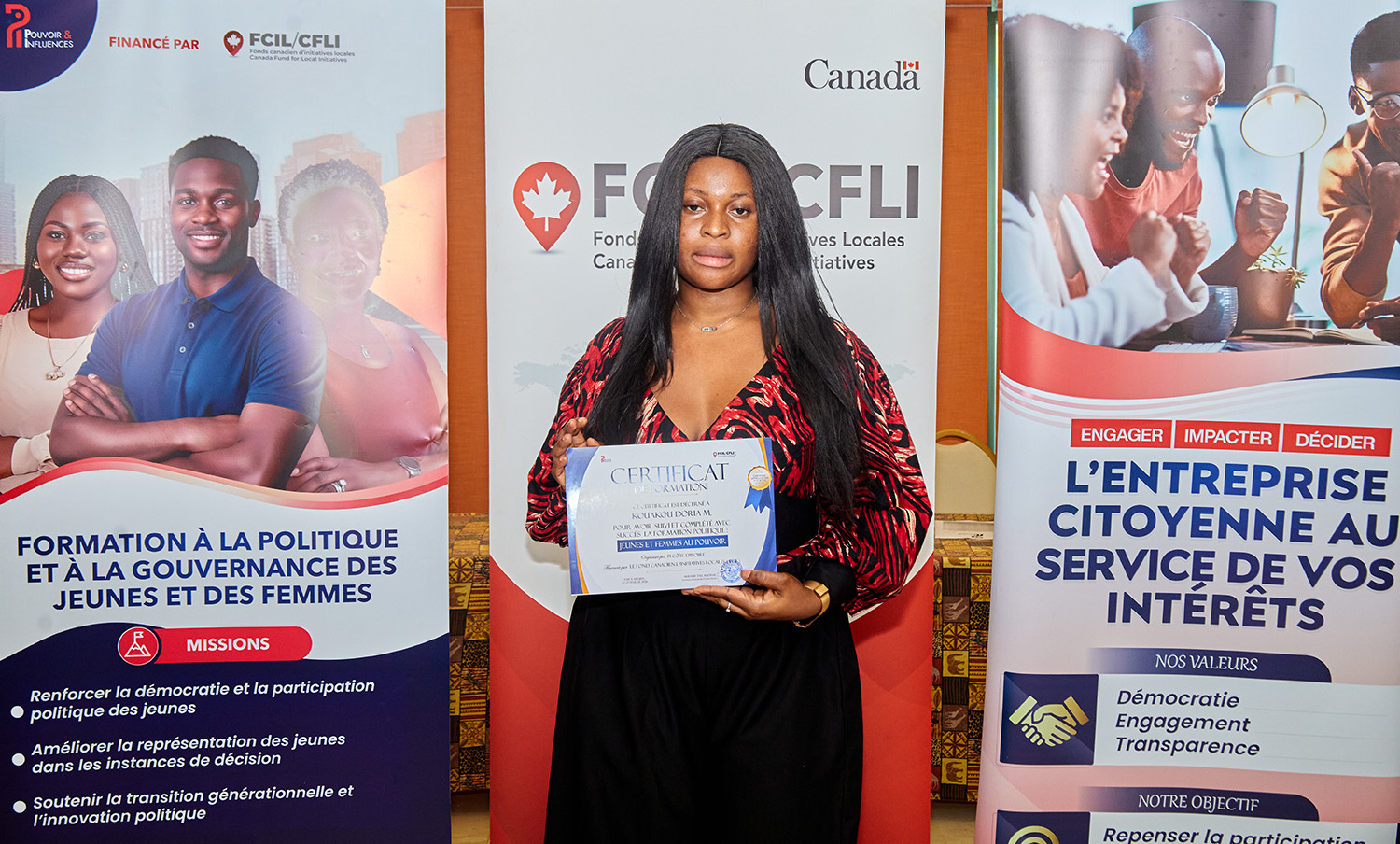 Du 25 au 27 février 2026, l’Hôtel Palm Club d’Abidjan-Cocody a accueilli « Jeunes et Femmes au Pouvoir : une formation pour agir », organisée par Pi Côte d’Ivoire avec le soutien du Fonds Canadien d'Initiatives Locales (FCIL), cette session intensive a visé à outiller la nouvelle génération de leaders pour renforcer leur participation politique et citoyenne.